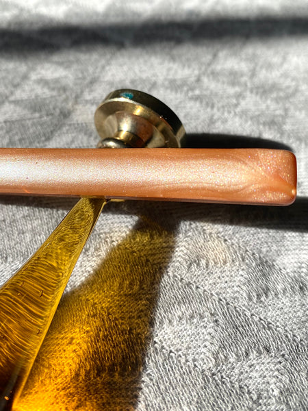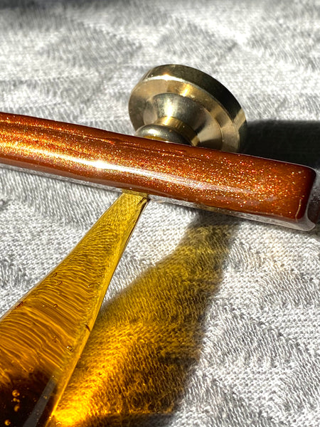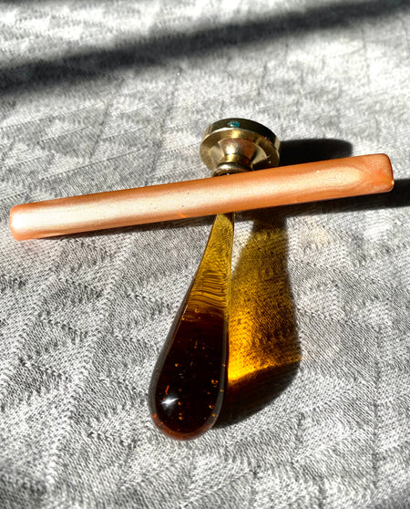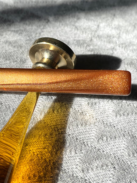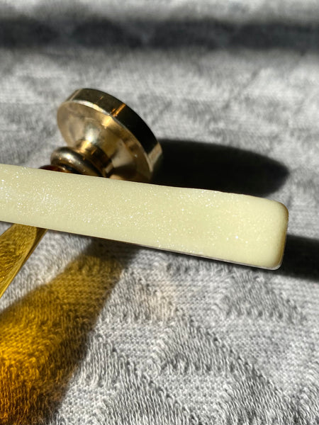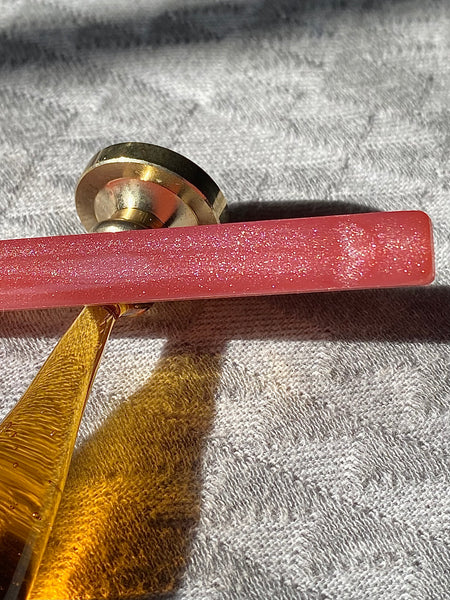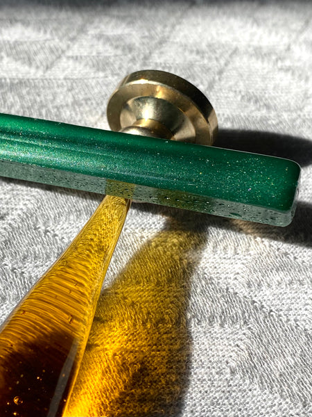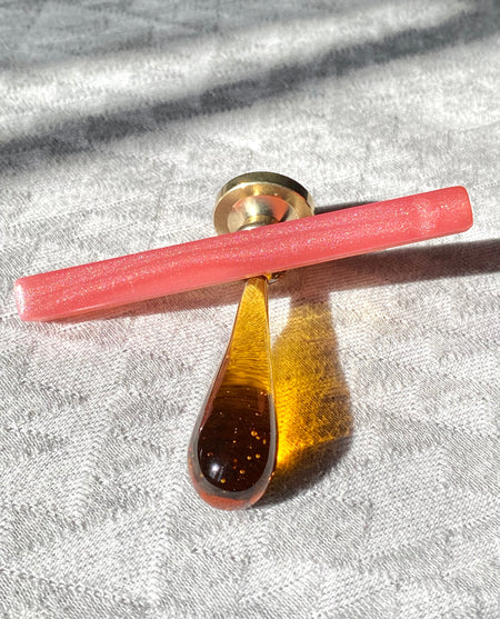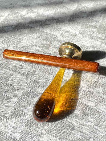 IMPORTANT NOTE: These sticks may be be more difficult to use for a novice wax sealer and best used by those with advanced wax sealing experience. While beautiful you must be aware that both the sticks and seals made with this wax are extremely fragile. They can shatter like glass if not handled with care. You may hear crackling coming from the stick or have small fractures appear when using against the hot spoon, this is normal.  This wax is best used for personal use such as scrapbooking, journaling or gift embellishment. WE DO NOT RECOMMEND USING THIS WAX FOR MAILING, IT IS FRAGILE AND SEALS WILL NOT SURVIVE THE TRIP.
