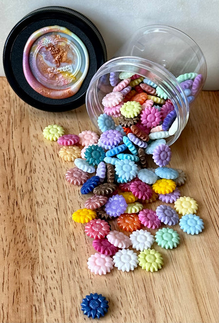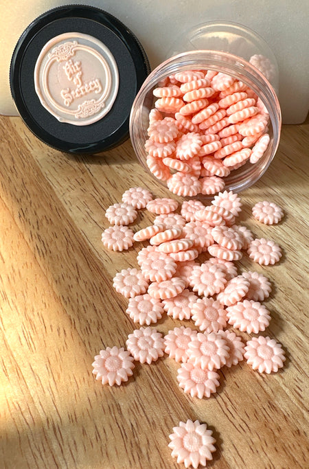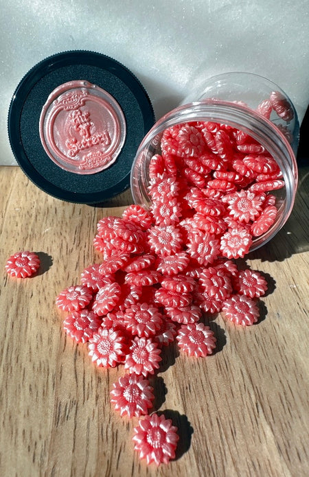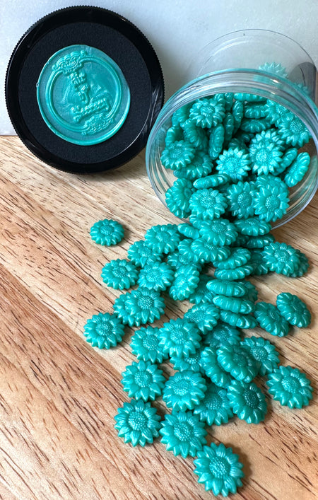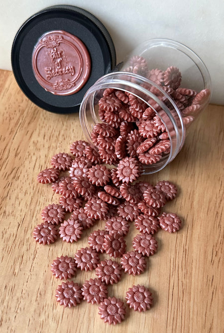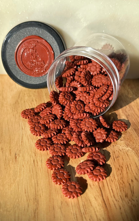 This collection will eventually have 71 colors of sunflower shaped wax seals beads to choose from. Most colors are unique and vary from our regular wax beads but some are very similar and could be close to equivalent to some shades. Check color descriptions for the regular shade that is closest.